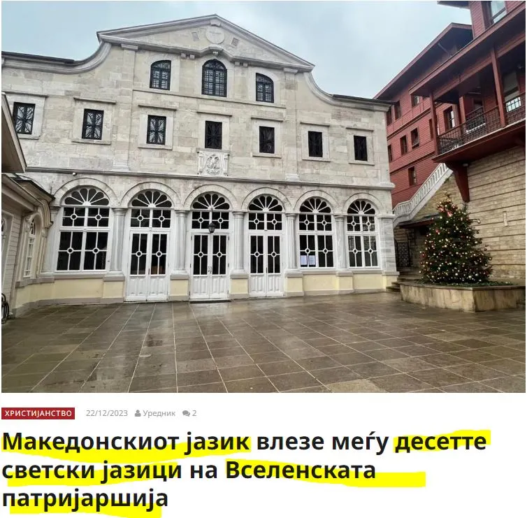 Είναι η δεύτερη συνεχόμενη χρονιά που το Οικουμενικό Πατριαρχείο δημοσιεύει τα Χριστουγεννιάτικα Μηνύματα στη μακεδονική γλώσσα στην ιστοσελίδα του, αφού αποφάσισε στις 9 Μαΐου 2022 να επαναφέρει τη σχισματική εκκλησία των Σκοπίων στην κανονική ενότητα ως Αρχιεπισκοπή Οχρίδας, αναφέρει η ηλεκτρονική πύλη των Σκοπίων Religija.